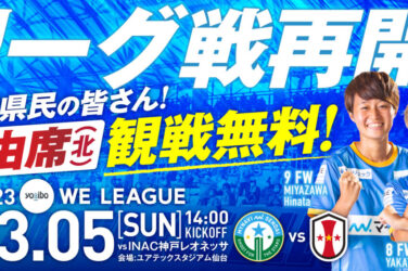 「宮城県民のみなさまを無料ご招待!」3/5(日) I神戸戦 試合情報