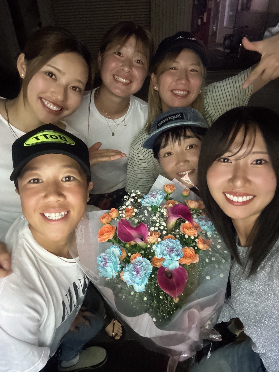 みんなで選んだ花束も喜んでもらえてよかったです!こだわりはマイナビカラーの花をいれてもらいました!笑
