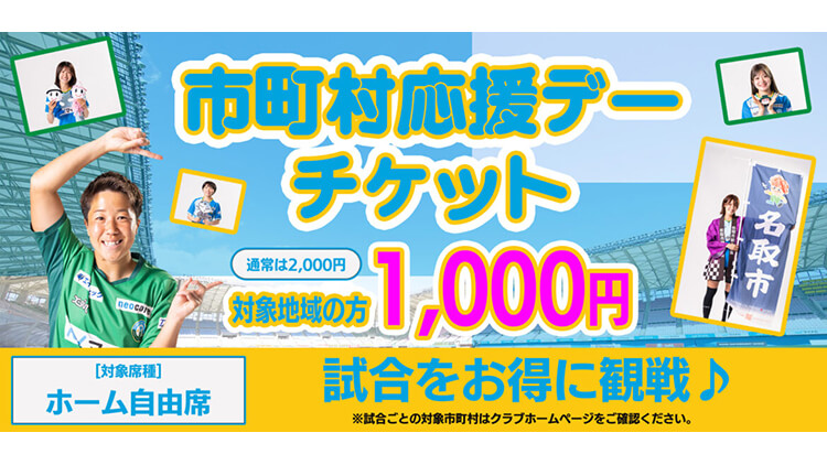 2025/26シーズンよりスタートした「市町村応援デー」に伴いホームゲームの試合観戦チケットを半額以下で購入出来る「市町村応援デーチケット」を販売いたします。