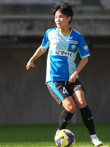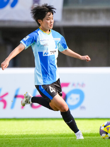 西野朱音選手とセンターバックのコンビを組み、守備の組織を統率する。「私にリーダーシップがあるかは分からないですが、“みんなで守る”というところを意識して、自分ができることとと、みんなにやってもらうことを整理できているのかなと思います」。与える指示は常に的確。仲間からの信頼も厚い。