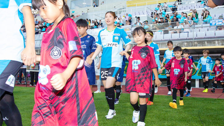選手入場前、FAN CLUBフラッグを持ってピッチへご入場いただき、FAN CLUBフラッグを掲げて、試合前のセレモニーにご参加いただきます。