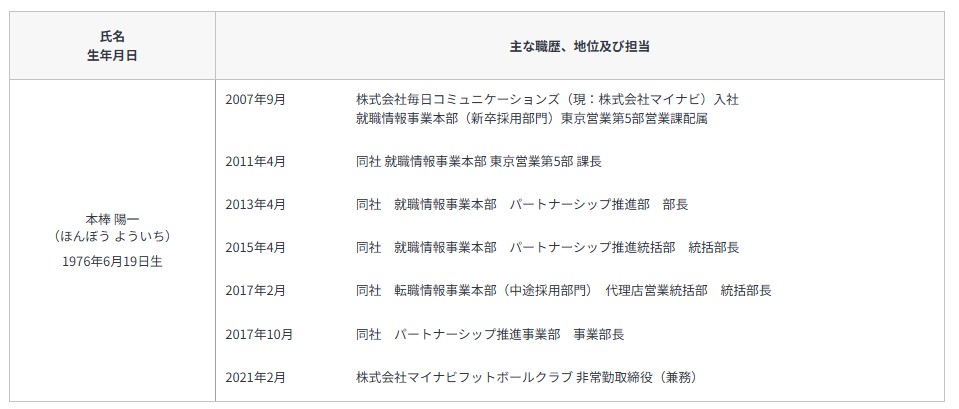 株式会社マイナビフットボールクラブ 経営体制変更のお知らせ