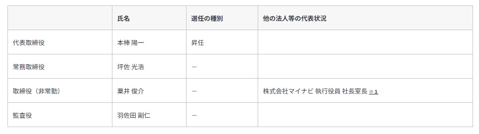 当社非常勤取締役を務める本棒陽一が7月1日より代表取締役社長に就任いたします。なお、現代表取締役社長 粟井俊介は6月30日をもって現職を退任し、7月1日より当社非常勤取締役を務めます。
