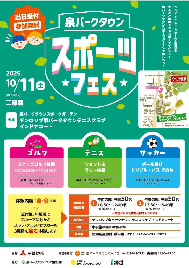 10/11(土)「泉パークタウンスポーツフェス2025」・10/12(日)「十符の里スポーツパークフェスティバル2025」・10/13(月・祝)「第19回スポーツフェスタin七ヶ浜」に参加しますのでお知らせします。