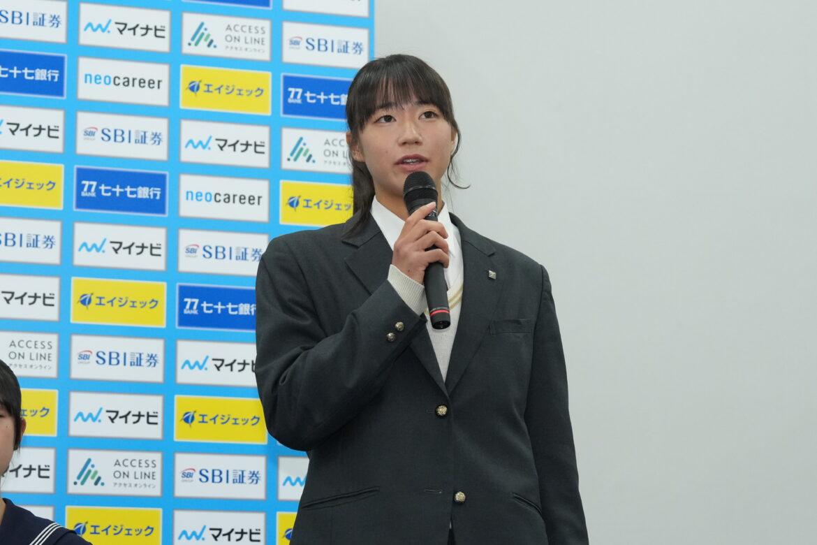 「こんにちは。日本体育大学より加入させていただくことになりました篠田帆花です。